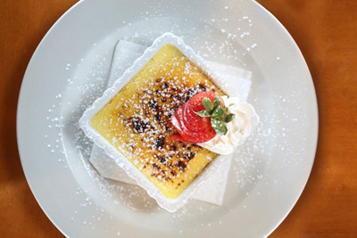 Rich moist chocolate layer cake, vanilla bean ice cream,
